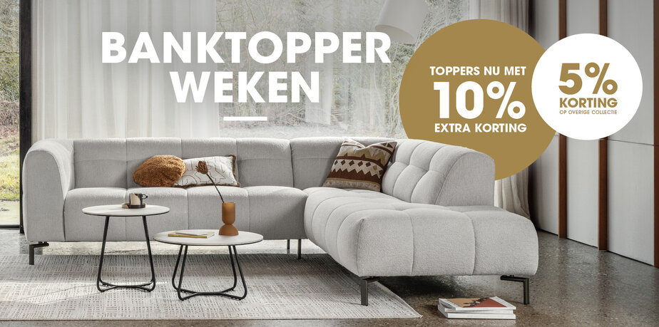 De Banktopperweken zijn van start bij Montèl: 10% korting op Toppers & 5% korting op overige collectie*. Van banken tot eetkamerstoelen en fauteuils, ontdek onze collectie aan toppers en profiteer van deze unieke korting!