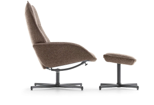 De elegante Majani draaifauteuil is gemaakt volgens de typische Scandinavische stijl en kwaliteit. Met de actuele stof rhythm in warme kleur wood en uiteraard uitgevoerd met het geweldige, speciaal geselecteerde zitcomfort van Baenks. Zoals getoond: draaifauteuil in de stof rhythm, kleur: wood. Met zwarte metalen 4-teenspoot. Afmetingen: H104 x B73 x D87 cm.