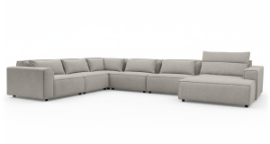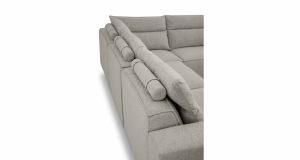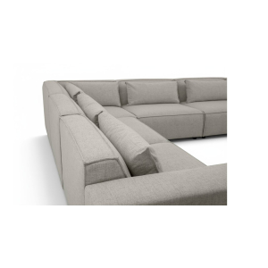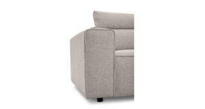 Deze bank combineert een eigentijdse vormgeving met een uitnodigende uitstraling. De zachte lijnen en decoratieve vlindernaad benadrukken het verfijnde karakter van het ontwerp. De dubbele rugkussens zorgen voor extra zachtheid en ondersteuning, waardoor een subtiele hoofdsteun ontstaat. Bekleed in de stof Soda (kleur Ash Grey) brengt de bank rust en comfort in het interieur. De subtiele zwarte kunststof pootjes versterken het lage, loungekarakter van de bank. Afmetingen: H73 × B428 × D166 cm.
