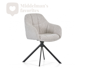 Montèl Flair brengt stijl en comfort samen in een eigentijds design. De subtiele stiknaden geven deze eetkamerstoel een elegante uitstraling, terwijl de draaibare zitting zorgt voor extra bewegingsvrijheid aan tafel. Met de zachte, maar stevige polyethervulling geniet je moeiteloos van lange diners en gezellige avonden. Een tijdloze toevoeging aan jouw eethoek!